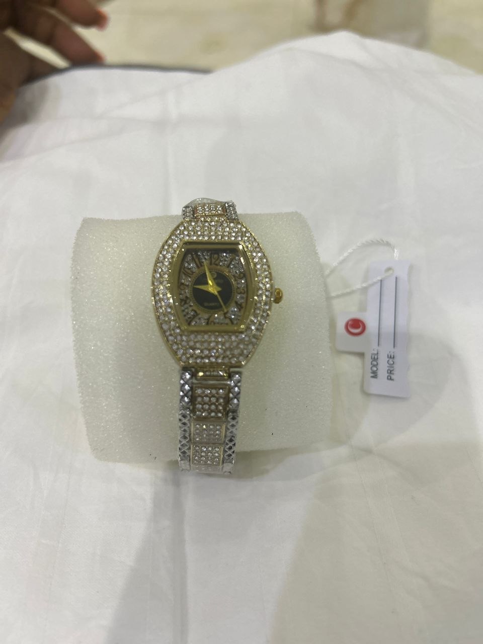 Upgrade your style with this stunning luxury crystal ladies watch, designed to add instant elegance to your outfit. Its gold-and-silver finish, sparkling stones, and unique oval face make it the perfect accessory for classy women.