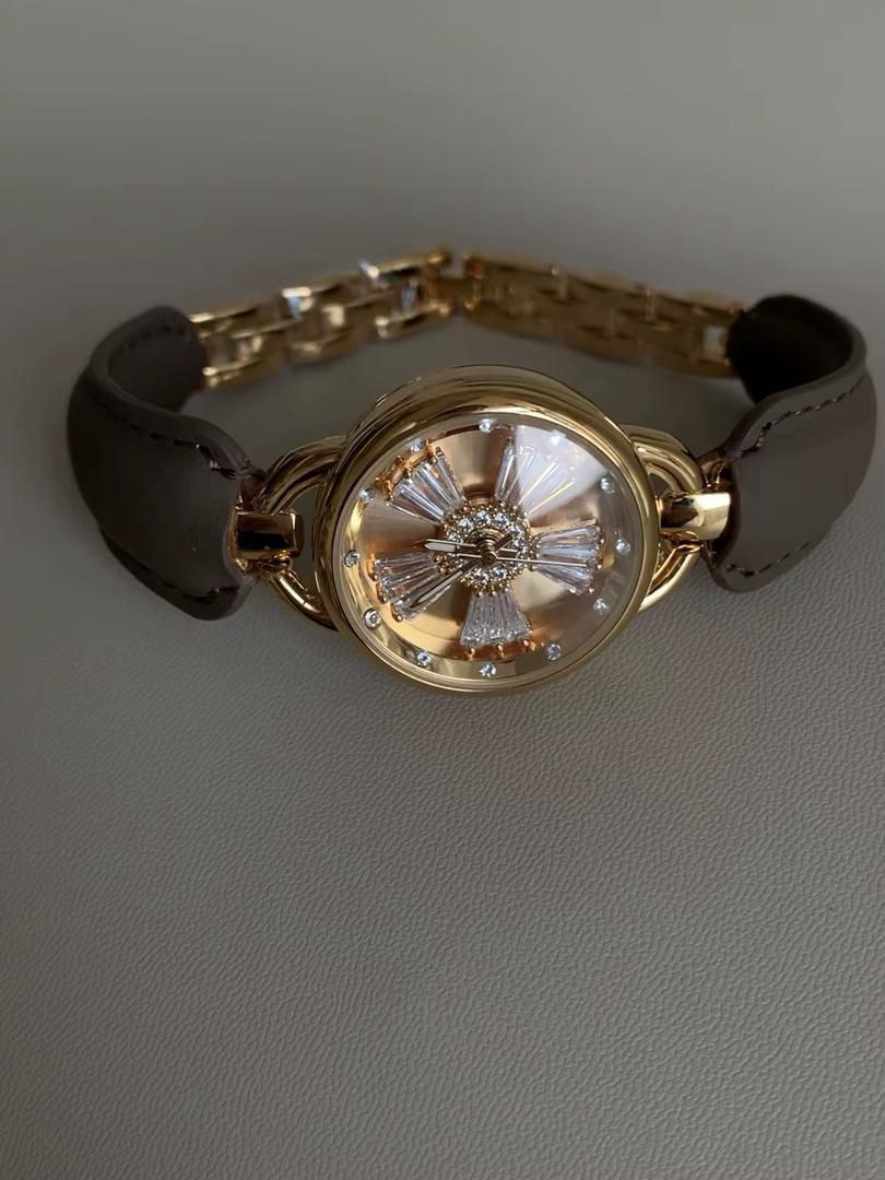 Step up your fashion game with this elegant luxury ladies leather watch, designed with a crystal-flowers dial and a premium leather strap. Its gold-plated case and sparkling stone details make it the perfect accessory for women who love style, class, and shine.
